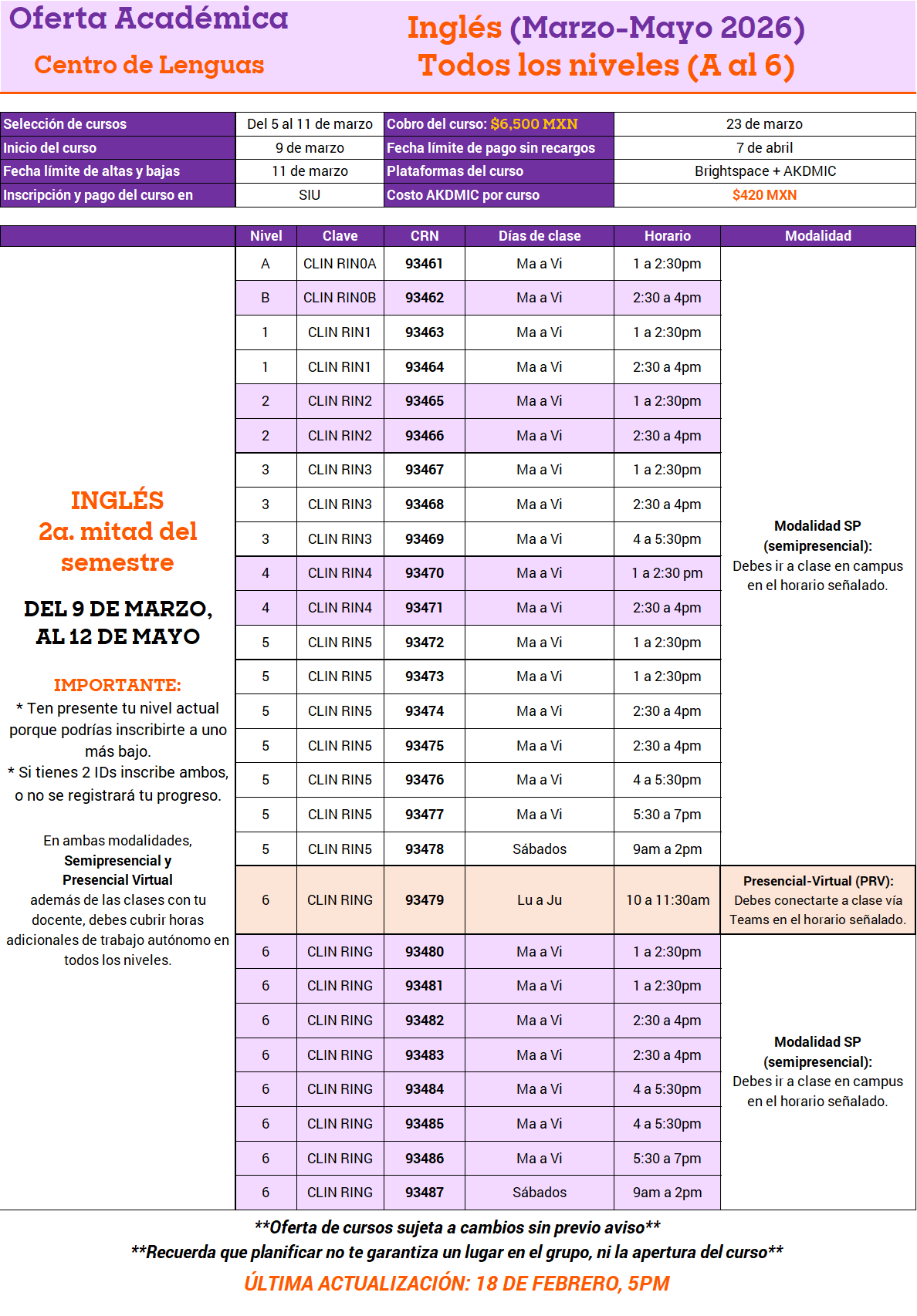 2a mitad del semestre (9 de marzo a 12 de mayo 2026)